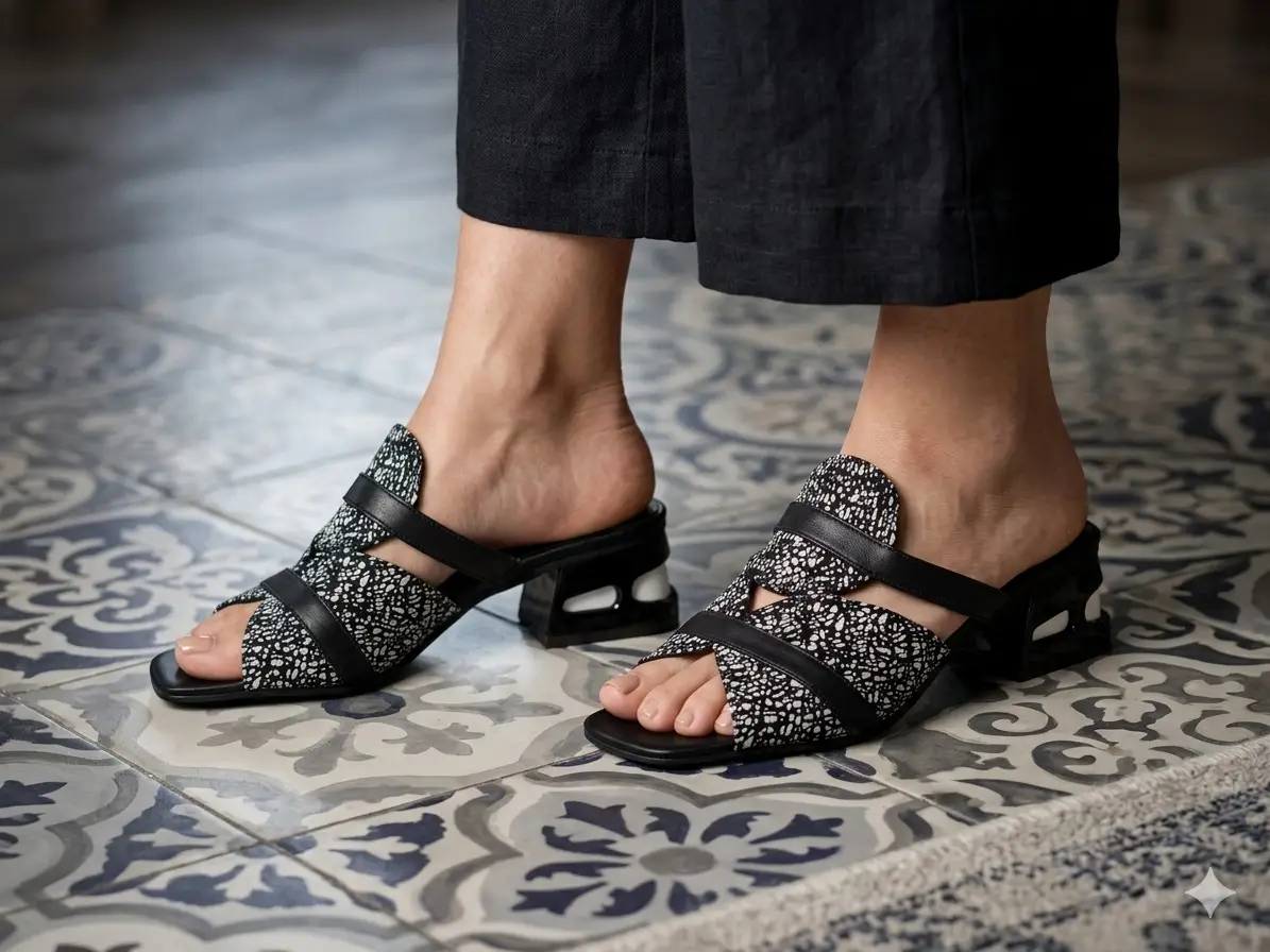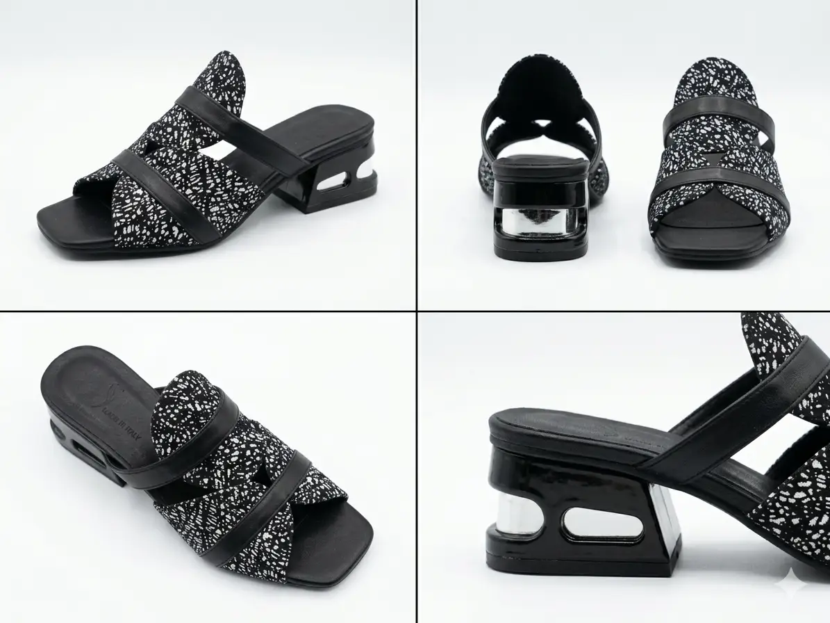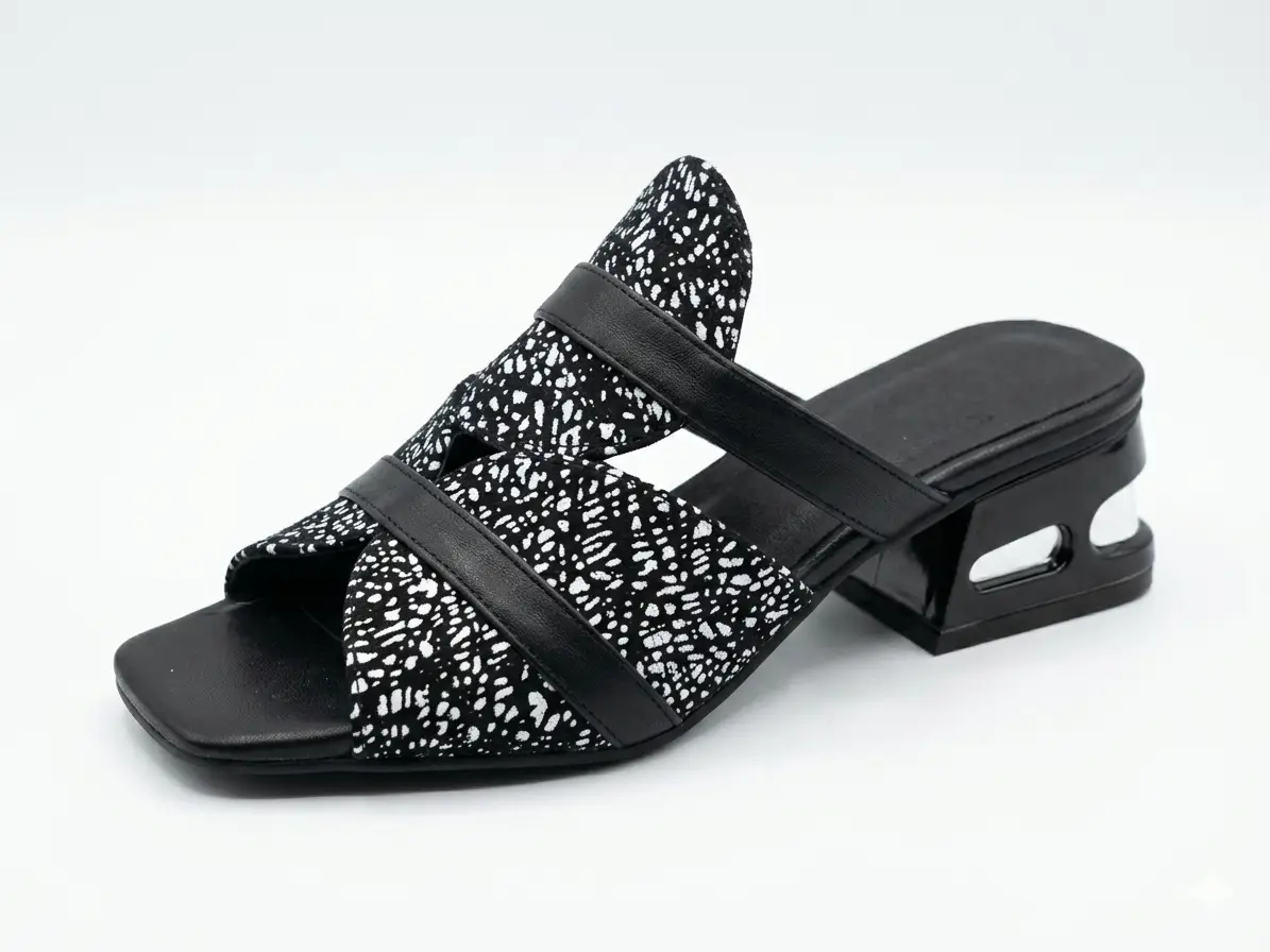 יש נעליים שנועדו ללכת בהן, ויש נעליים שנועדו להשאיר חותם. הכפכף החדש שלנו משלב עורפיצוצים שחור לבן =עם רצועות לק שחורות למראה גיאומטרי מדויק שלא ניתן להתעלם ממנו.