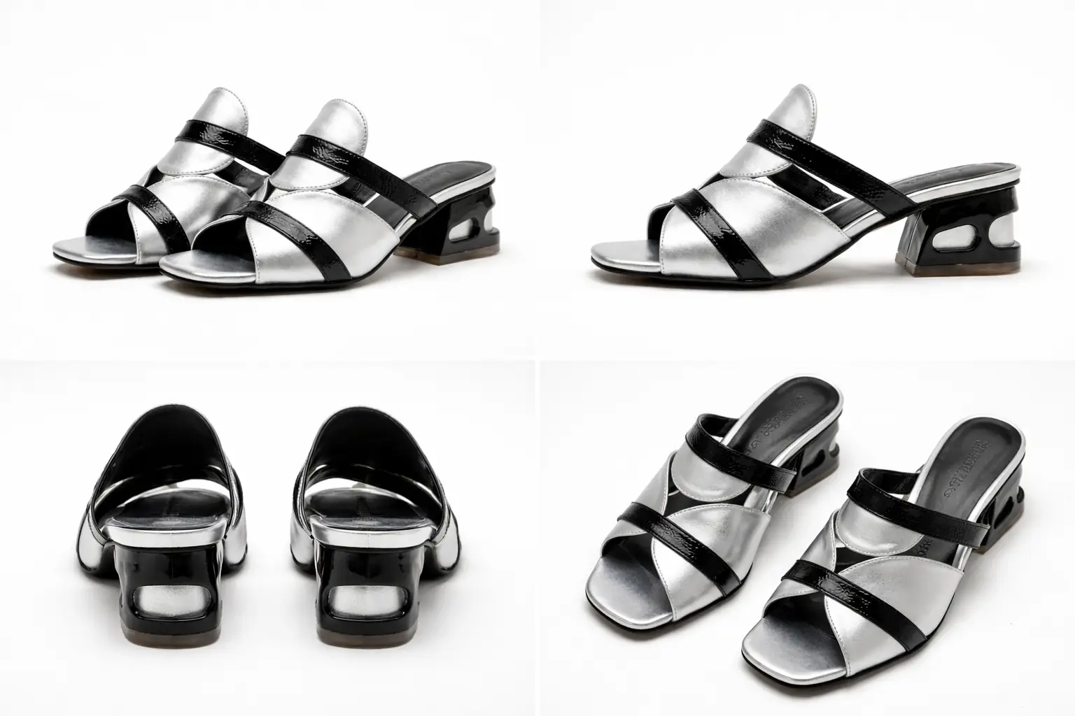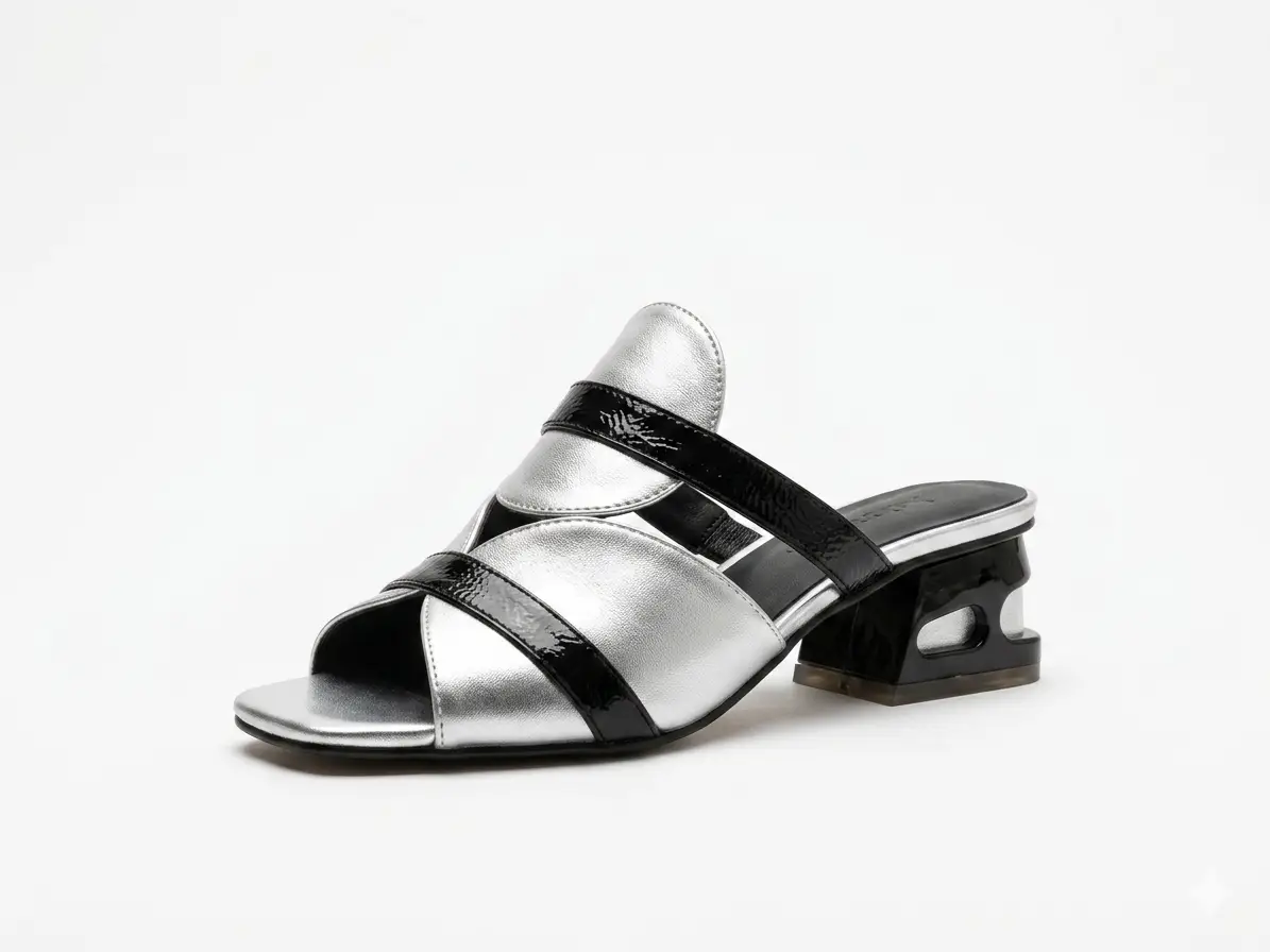 יש נעליים שנועדו ללכת בהן, ויש נעליים שנועדו להשאיר חותם. הכפכף החדש שלנו משלב עור מטאלי בוהק עם רצועות לק שחורות למראה גיאומטרי מדויק שלא ניתן להתעלם ממנו.